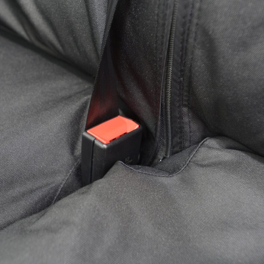 - Hook & loop opening for seatbelt to pass through