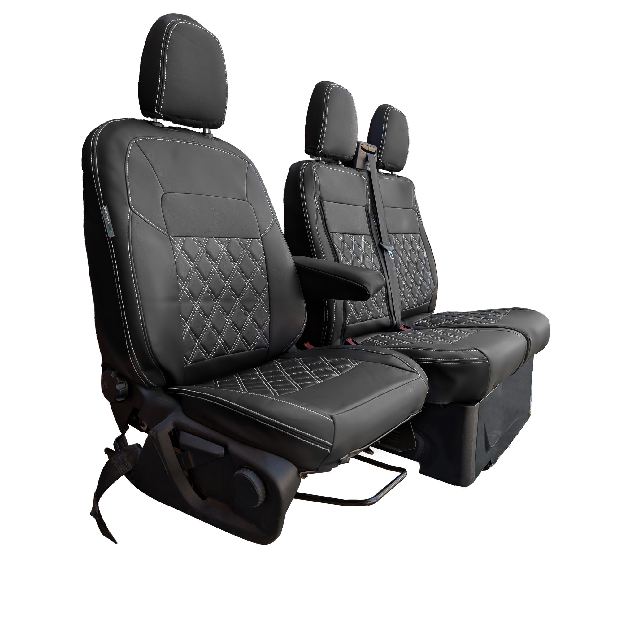 Front seats single and twin, with zip access to fold down tray, suitable for driver seats with 0, 1 or 2 armrests, airbag seams built into the driver and passenger seats. Allows access to all seat functions (under seat storage, access to seatbelts)